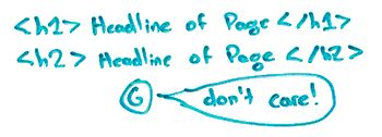 Well, I've heard this said: If you put your headline inside an H2 rather than an H1, Google will consider it a little less important. No, that is definitely not true. In fact, I'm not even sure the degree to which Google cares at all whether you use H1s or H2s or H3s, or whether they just look at the content and they say, "Well, this one is big and at the top and bold. That must be the headline, and that's how we're going to treat it. This one is lower down and smaller. We're going to say that's probably a sub-header."
