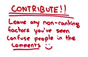 Normally on Whiteboard Friday, we would end right here. But today, I'd like to ask. These 10 are only the tip of the iceberg. So if you have others that you've seen people say, "Oh, wait a minute, is this a Google ranking factor?" and you think to yourself, "Ah, jeez, no, that's not a ranking factor," go ahead and leave them in the comments. We'd love to see them there and chat through and list all the different non-Google ranking factors.