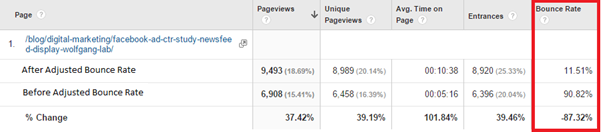 When we implemented Adjusted Bounce Rate on our own website, we were able to see that a lot of our blog posts which had previously had high bounce rates, had actually been really engaging to those who read them.