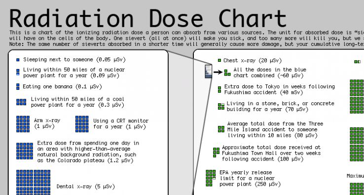 This excellent Radiation Dose Chart infographic created by xkcd not only inspires awe but has been linked to thousands of times due to people wanting to share its practical utility.