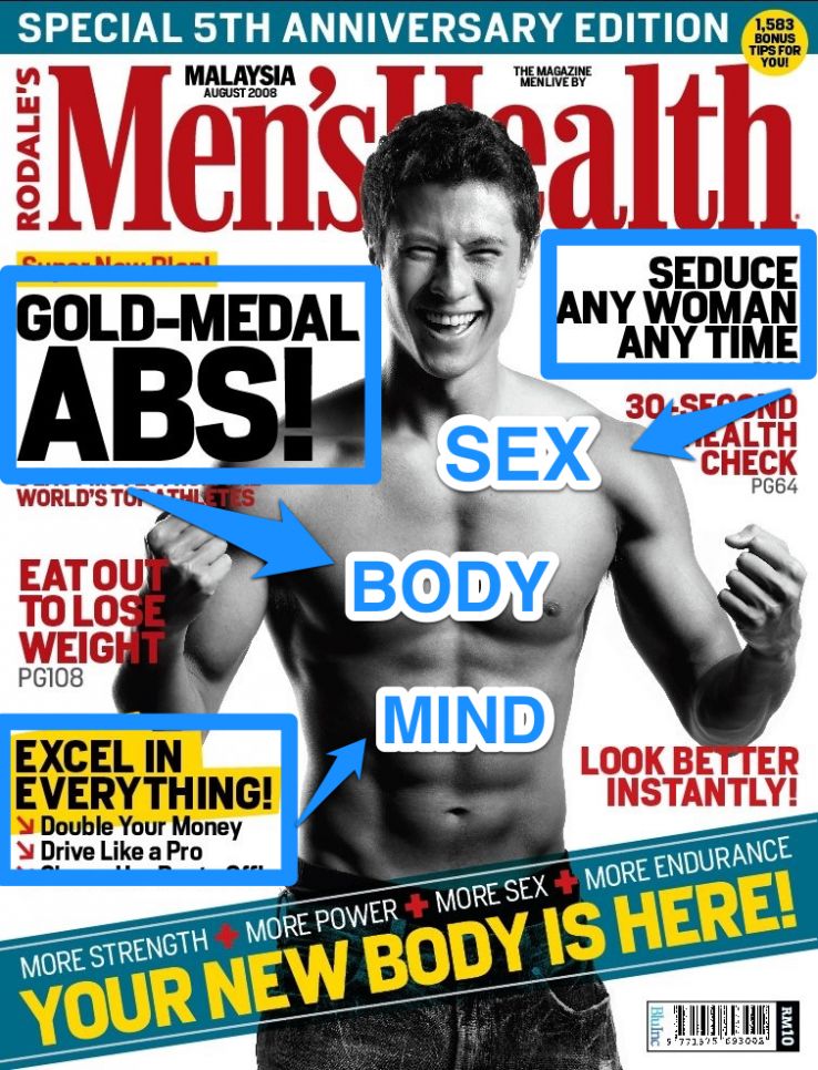 Every single month, the cover will feature content that offers to help you improve your mind, body, or sexual performance: