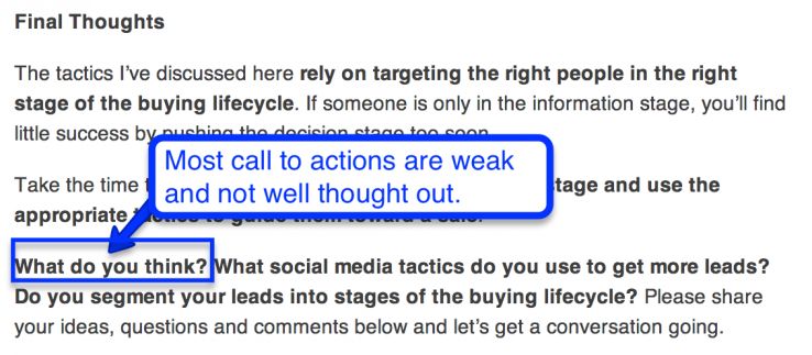 Bill's call to action is specific. A call to action will also rolls easily off an already-good article. We're also reminded of the branding and personal touch at the end. This helps reinforce that we can have a direct, personal conversation.