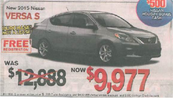 Ruling that the price advertised in big red font was a “deceptive door opener” because: