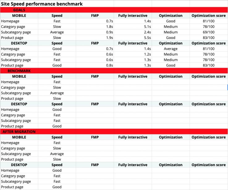 The template above was what we used to track our site speed before and after. Our benchmarks were consistent between the website before and after our staged migration using both Lighthouse and GTMetrix, meaning we were on track for our go-live date.