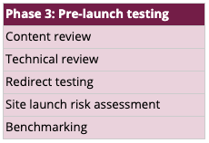 The technical review involved checking everything we had planned out in the second phase, so making sure redirects, sitemaps, links, and scripts were working and crawlable. IT implemented all server-side conditions, and set up the new domain to work internally for all testing tasks that needed to be executed. Again, the checklist was leading in this endeavor.