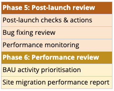 Tim outlined a six-phase project with specifications and definitions of our SEO strategy in a website migration document with an accompanying spreadsheet, complete with an RACI (responsible, accountable, consult, and inform) matrix and timeline. Tim’s plan was extremely clear, with positive outcome scenarios including possible growth as a result of the migration.
