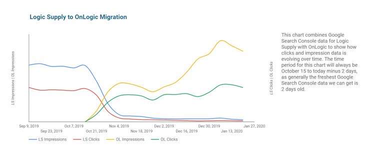 I had planned to camp out next to my computer for the next few days to watch for problems, but nothing surfaced right away. While organic traffic did take an expected dip, it wasn't nearly as dramatic or prolonged as we'd been warned it might be. We are still seeing logicsupply.com indexed months later, which is frustrating, but doesn’t seem to be affecting our traffic on the new domain.