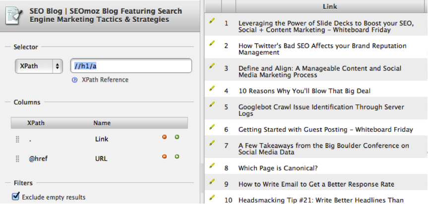 Knowing how to use things like import XML can be a massive time saver but there’s a learning curve to get really good at it. This plugin for Chrome is a great tool to quickly scrape any elements you want and automatically put them into a Google doc. I use this a lot for scraping lists of websites or headings on a page. It’s super simple to use, just right click on what you want to scrape and off you go. Get it here