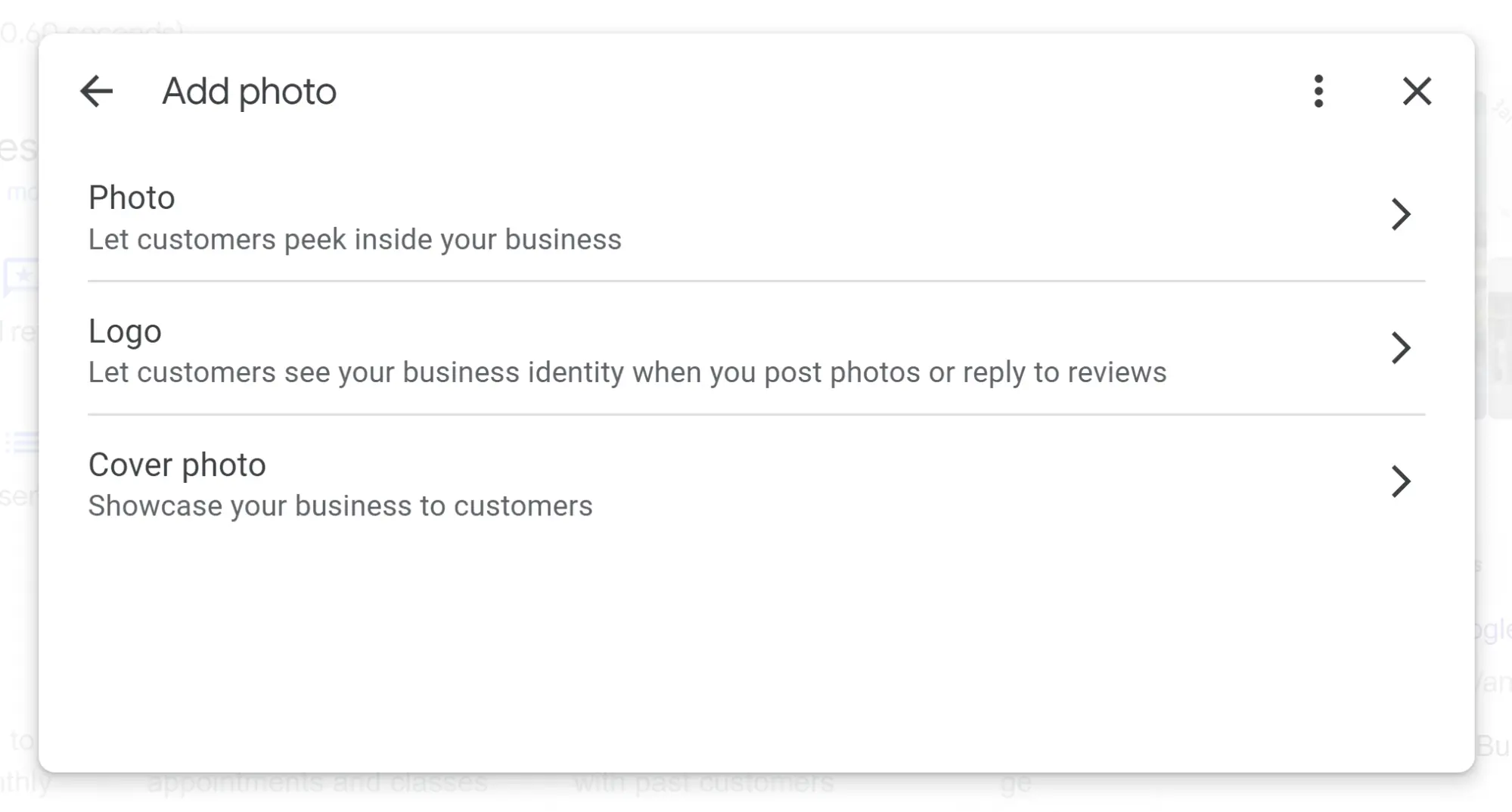 When clicked on, this takes the public to an interactive Google Street View visual of the business. When you are logged in, clicking on the feature takes you to this interface for uploading your own exterior imagery: