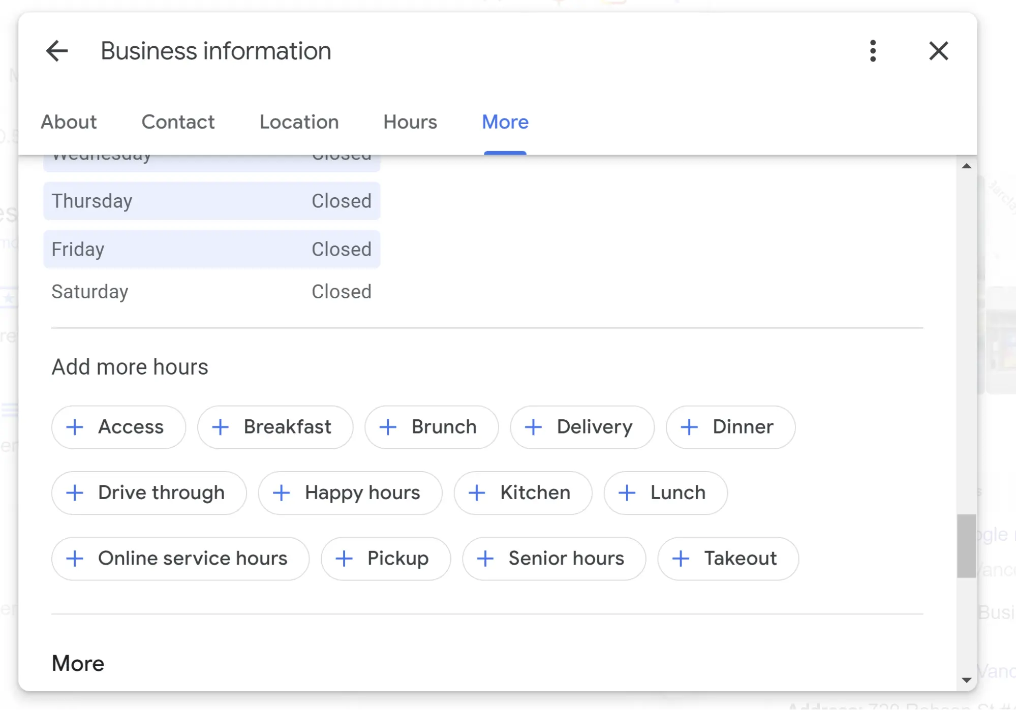Controllable? Partly — businesses can add a great many attributes by clicking the “Business Information” tab in the NMX and then going to the “More” section. However, Google also crowdsources attributes from the public.