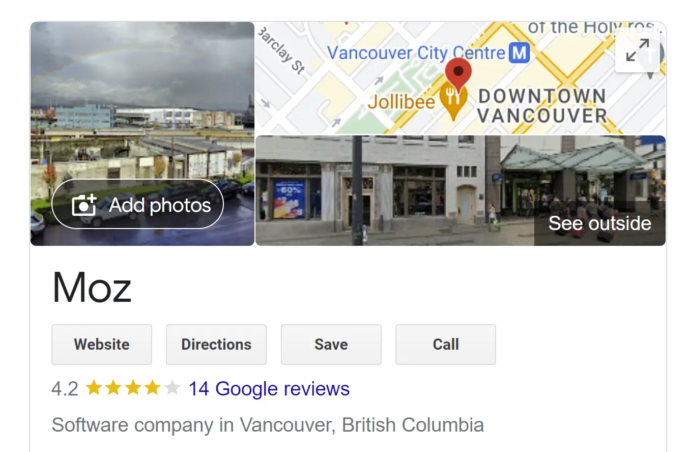 When clicked on, this takes the user to both owner and user-generated photos in a set. Photos significantly impact CTR. Photos must be monitored for spam. You can also upload videos to your photos section, but try to post more than 2 videos so that you’ll get a separate mobile video subtab. It’s also important to know that previous versions of Google’s local product offered an analytical feature called “Photo Insights” but this no longer exists in the NMX.