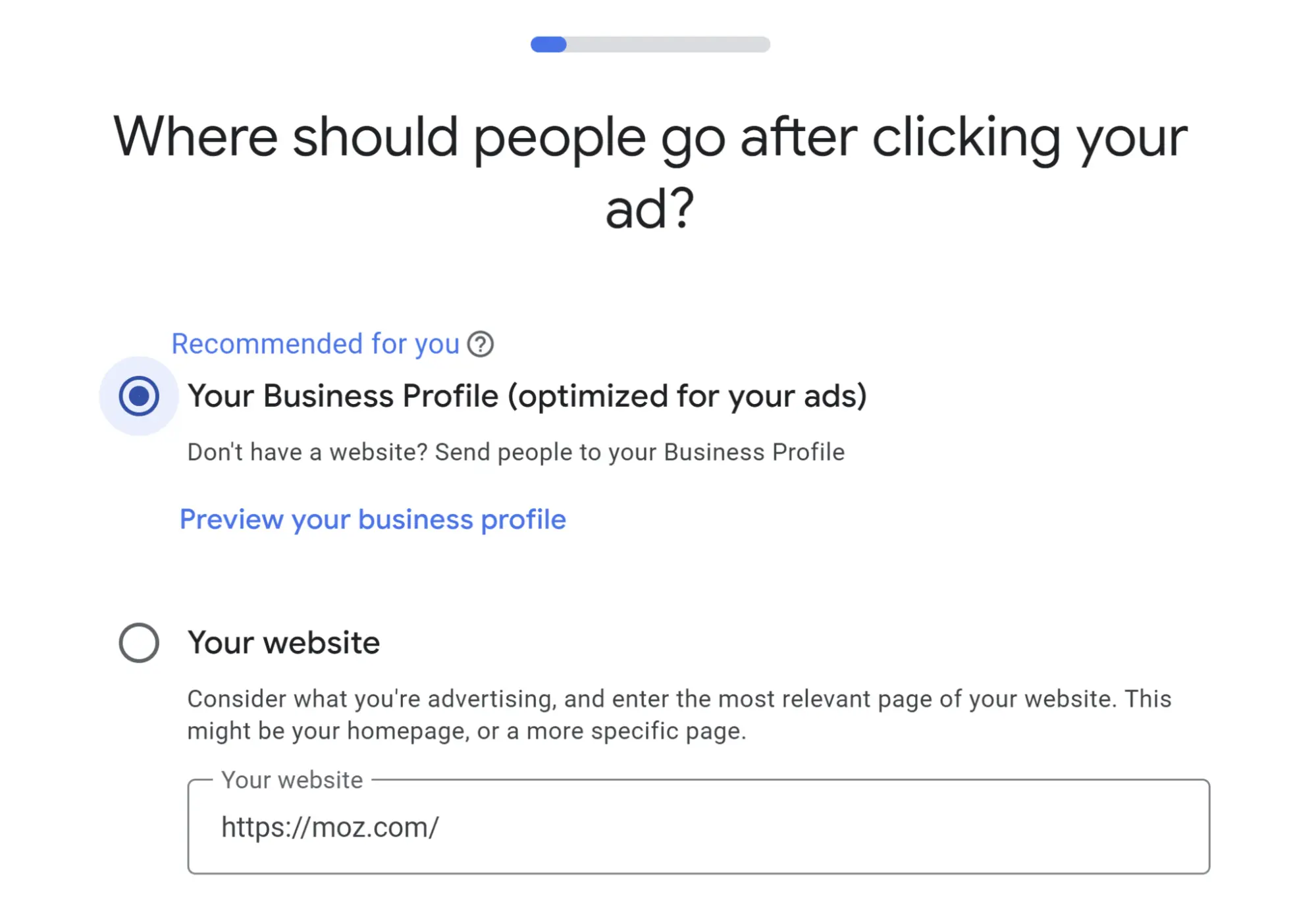 This link takes you to whichever page of your website you’ve designated as the Google Business Profile landing page.
