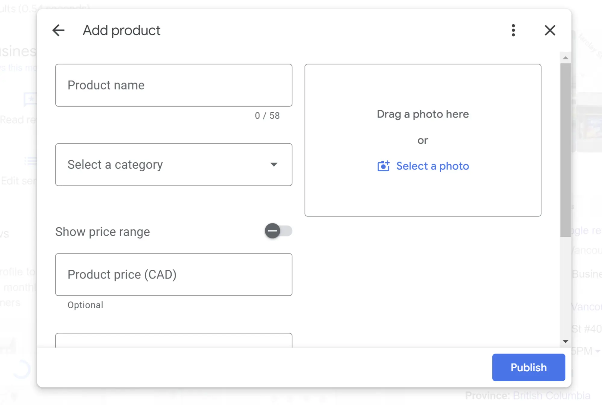 You can greatly enhance your listing by adding products to it representing key offerings in your inventory. These can be physical products, like retail goods, digital products, like software, or intangible products, like home services. You can add a price, description, buttons, and links for more information.