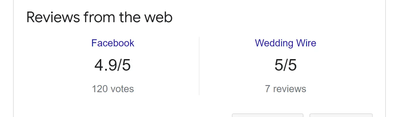 This features a rating summary and links to relevant third-party review sources, determined by Google.