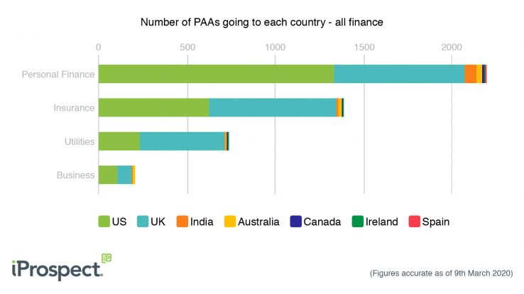 17.41% of credit card PAAs were showing UK-specific PAAs, with the US taking just over four out of every five. That’s huge.
