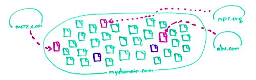 - Consider some new pages for content, like essentially saying, "Hey, I recognize that these other pages, maybe they're About and my Terms of Service and some of my products and services and whatnot, and they're just not that link-worthy. They don't deserve links. They're not the type of pages that would naturally earn links." So we might need to consider what are two or three types of pages or pages that we could produce, pieces of content that could earn those links, and think about it this way. You know who the people who are already linking to you are. It's these folks. I have just made up some domains here. But the folks who are already linking to your homepage, those are likely to be the kinds of people who will link to your internal pages as well. So I would think about them as link targets and say, "What would I be pretty confident that they would link to, if only they knew that it existed on our website?" That's going to give you a lot of success. Then I would check out some of our link building sections here on Whiteboard Friday and across the Moz Blog for more tips.