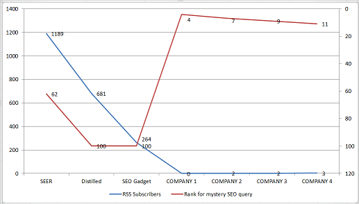 Reality: Not even close pal. The four mystery SEO companies have seven subscribers to their blog combined.