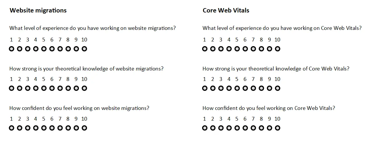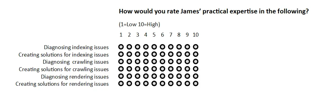 It can be tough to ask the right questions of candidates who are at a different stage of their SEO career than you. If you’ve been in the industry for several years, it might be difficult to identify what someone of their experience should know and be able to achieve. Equally, if you’re not an SEO yourself, but involved in hiring one, you may not know enough about the discipline to really gauge the extent of your interviewee’s knowledge. It’s important to identify the depth of skills you would expect someone at the level you’re hiring for to have. One way of doing this is by looking at the types of problems you would want that person to solve. What skills would need to be present for them to do that? Then look at weighting those skills. Which are absolutely necessary for getting the job done and which would aid to a degree.