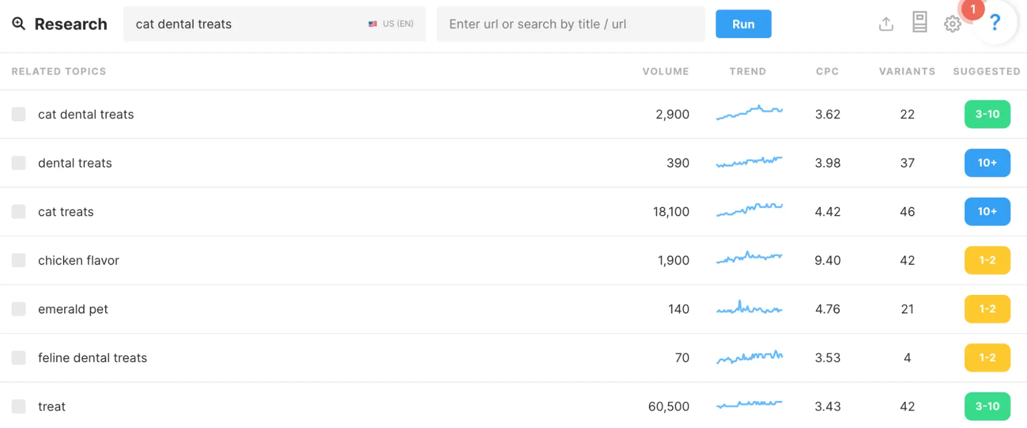 Let’s say you’re a pet food company and one of your main products is cat dental treats. Once you’ve determined that this is the exact keyword you want to target (“cat dental treats”), it’s time to start your research.