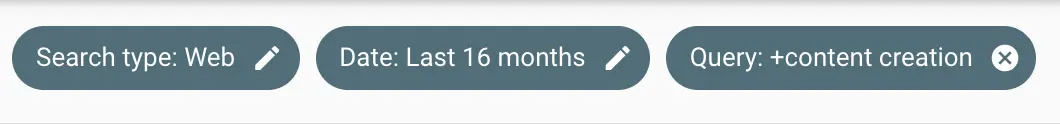 Let’s use the topic of “content creation” as our desired pillar page keyword. Search for the query in Google Search Console (choose the “Queries containing” option):