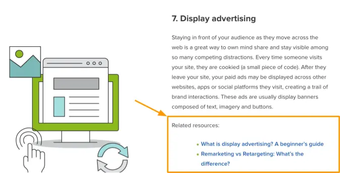Then, throughout the page, we offer readers the opportunity to go deeper and learn more about each subtopic by linking to relevant blog content: