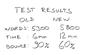 Basically, the engagement metrics on the new page were significantly higher than on the old when implemented in this way.