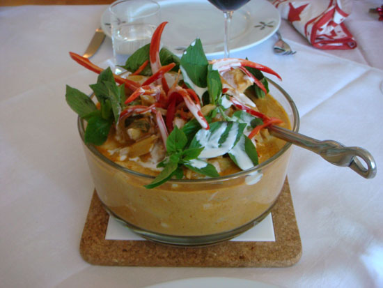 After the conference was over, later that week after inadvertently crashing a yacht club party (totally true--we got free burgers but had to sit through an hour-long slideshow presentation about Swedish boat races), Lennart invited me, Manstery Guest and Patrick to his house for a homemade Thai lunch courtesy of his wife, Sandra. Not one to pass up an opportunity to eat, I graciously accepted.