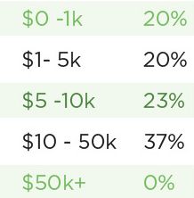 That being said, there now appears to be a much larger number of companies in the $10-$50k per month bracket when you compare this year's 37% with last year's 11%.