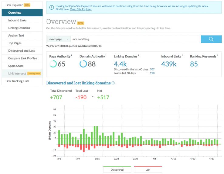 We’ve heard your frustrations with Open Site Explorer and we know that you want more from Moz and your link building tools. OSE has done more than put in its time. Groundbreaking when it launched in 2008, it’s worked long and hard to bring link data to the masses. It deserves the honor of a graceful retirement.