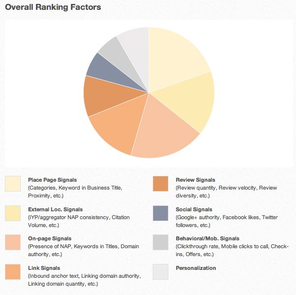 I'm pleased to announce the full results of this year's Local Search Ranking Factors survey were published earlier this morning. (The pie chart below is just a teaser.)