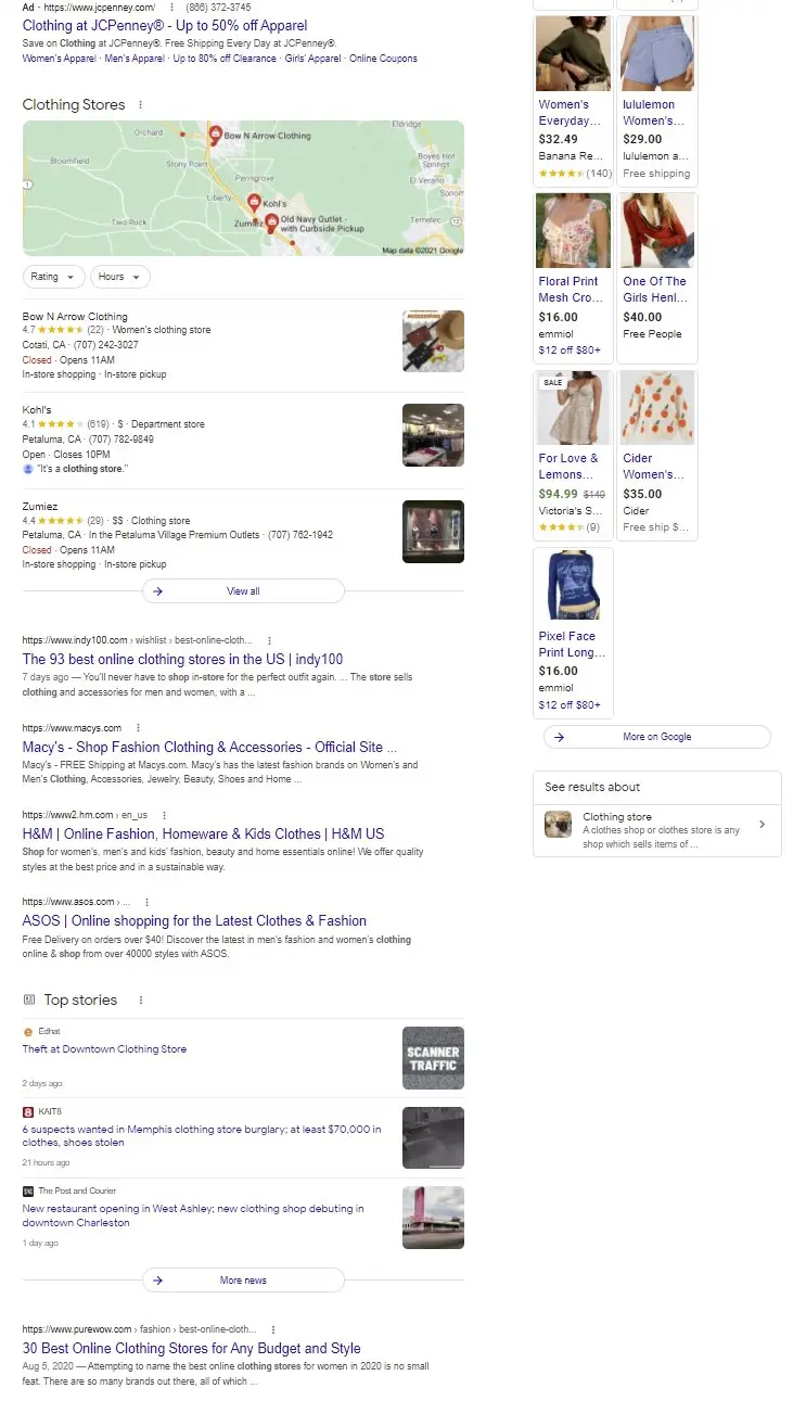Meanwhile, Google’s increasingly powerful shopping environment largely defaults to massive and frequently virtual sellers unless the searcher filters results down with the “available nearby” or “smaller stores” option: