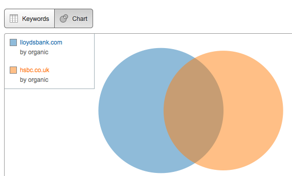 It allows you to compare two domains and visualize the overlap they have from a keyword ranking perspective. For this example, we will choose to compare two UK banks – Lloyds and HSBC.