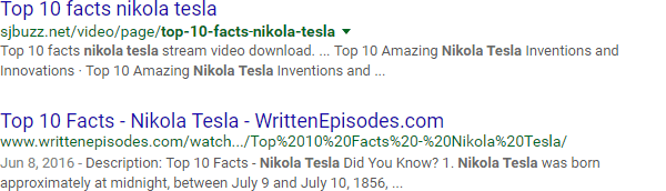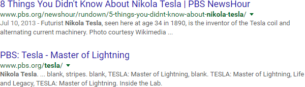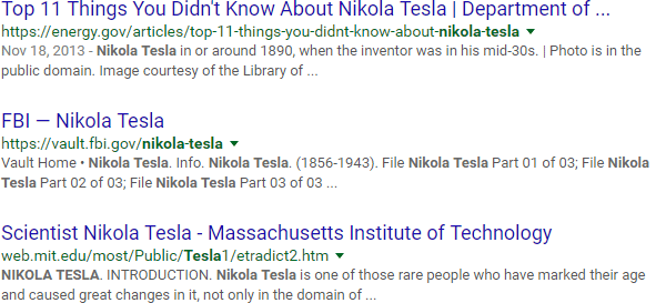 Let's say you've got a blog post to write about the inventor Nikola Tesla. You hop over to Google and search "tesla," only to find a lot of results like this: