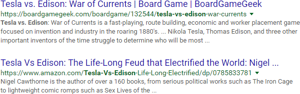 You've settled on using "Tesla vs. Edison" in your title, so let's do a quick check on content with that exact-match phrase: