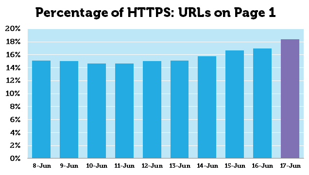 HTTPS in search results is rising. Recent MozCast data from Dr. Pete shows nearly 20% of first page Google results are now HTTPS.