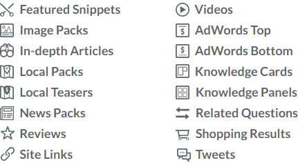 - Track the 16 highest-impact desktop SERP features for each keyword ranking you track in a campaign.
