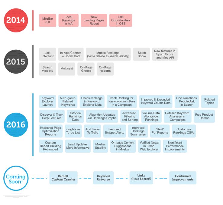 Our increased focus on SEO translated to a big increase in the number of new features and improvements we were able to add to Moz Pro in 2016. In fact, we shipped more significant updates in 2016 than 2014 and 2015 combined, and we already have a lot in the works for 2017.