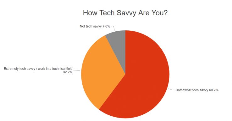 72 percent of respondents were based in the U.S., 8 percent in India, and 10 percent in Europe or the U.K. 67.8 percent considered themselves somewhat technically-savvy or not technically-savvy at all. 71.3 percent were under the age of 40.