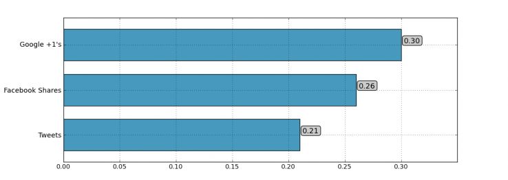 As in 2011, social signals were some of our highest correlated factors, with Google+ edging out Facebook and Twitter: