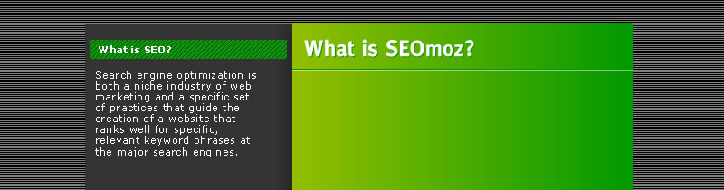 The re-design of SEOmoz has proven itself to be a very difficult and time consuming task, as you can see I'm still working on the header. Rand suggested I write a blog entry so you can all see how things are coming along and share in my turmoil. :)