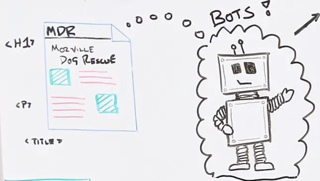 So for me, as a technical SEO, maybe I'm thinking about things like my H1 tag or my paragraph tag or my title tag, for this example page here for Mozville Dog Rescue.