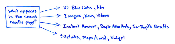 - 10 blue links and ads, which is very, very classic old school, but uncommon these days? Or are we talking about search verticals appearing in their images, which suggest maybe I should be thinking about...