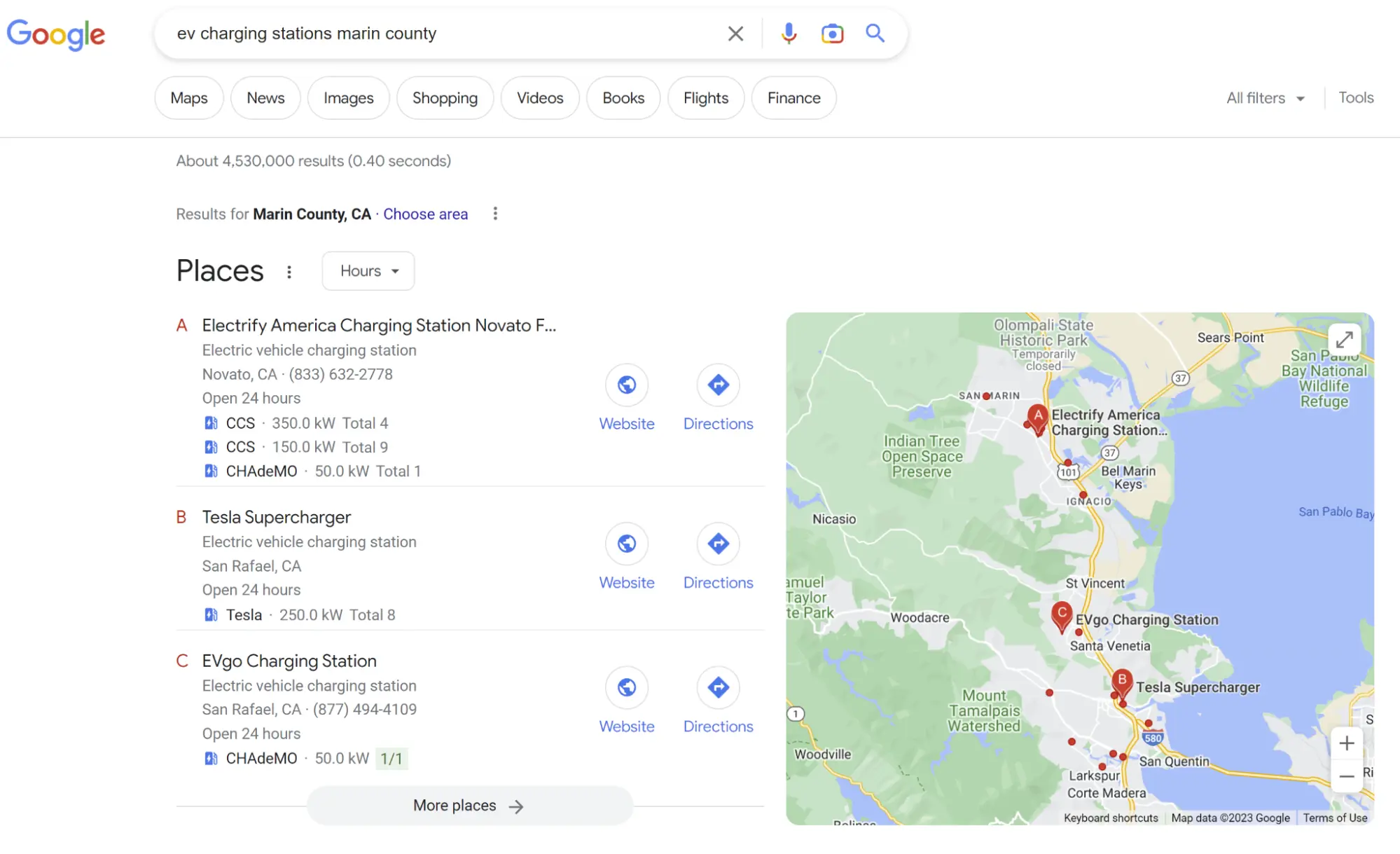 And this one, with the map above the results, and again, no letters or website/directions links: