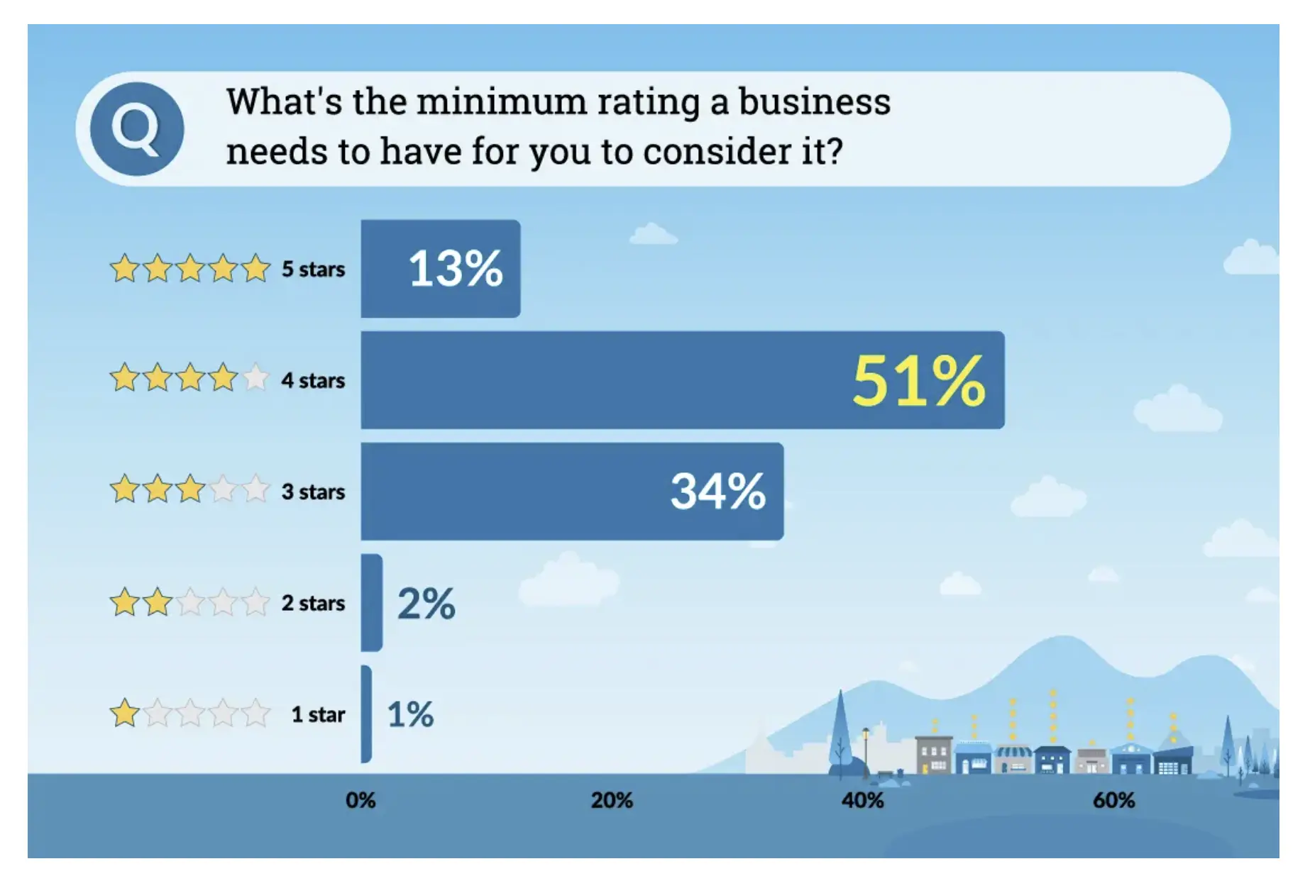 Meanwhile, a majority of 51% say a business must have at least 4 stars for them to consider choosing it.
