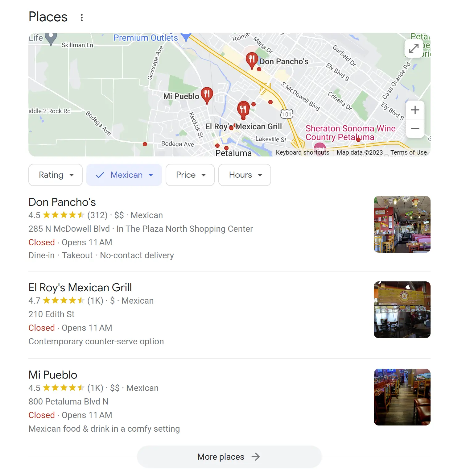 There are many variations, based on query, industry, and device. Frequently, local packs appear above the organic results, but they can also be displayed further down the page. Mostly, local packs contain three results, but this number can sometimes change and they may also contain paid ads. Aspects of your Google Business Profile, as well as other sources like your own website and third-party websites, have a demonstrable impact on whether or not you show up in Google’s local packs and the extended listings they click to that are called the Local Finder results.