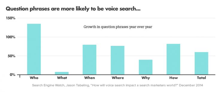 Whereas with typed search we see greater value in simple phrases that we call "head terms," the world is much more complex in voice. Below we see a breakdown of words that will trigger searches in voice: