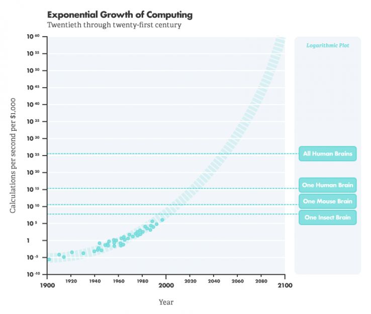 According to Kurzweil’s thesis on the growth of technology (the Law of Accelerating Returns),