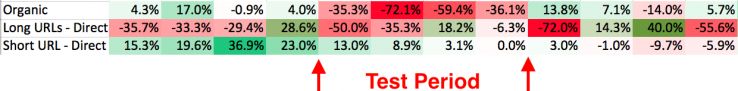 I ran this by our contacts at Groupon, who said this wasn't totally unexpected. You see, in their experiment they saw the biggest drop in direct traffic on long URLs, defined as a URL that is at least as long enough to be in a subfolder, like https://followerwonk.com/bio/?q=content+marketer.