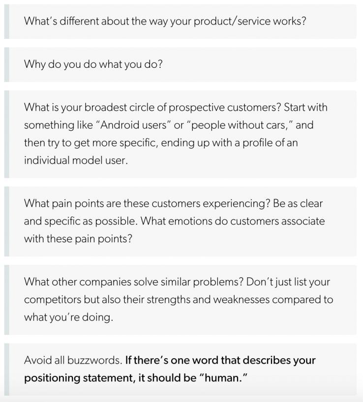 Arielle Jackson offers some questions and a simple framework to make sure your positioning is solid by using the prompts: For, Who, That, and Unlike:
