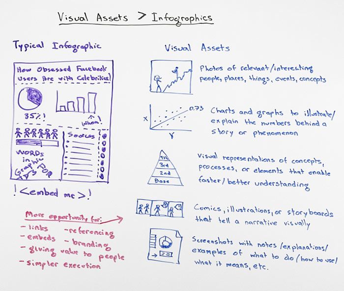 So these are visual assets. There are many different kinds of visual assets. In fact, I would say infographics, traditional infographics are just one type of visual asset and possibly not the best one. In fact, probably not the best one in my opinion.